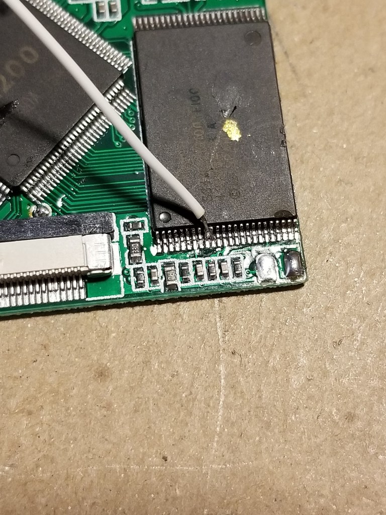 Then, I tried to solder a lead to the latter chip to try and ground it. It’s quite tricky with SMD components, so I had to compromise.