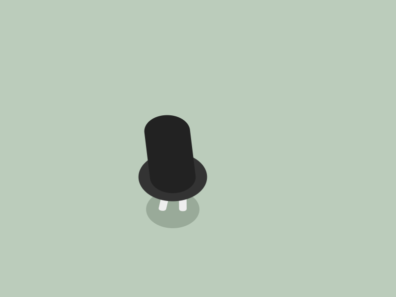 In the sketch, the animated magic hat with tiny rabbit feet slowly runs away from the mouse cursor. To animate the legs and feet I used generative walk cycle logic from earlier code experiments, although of course it took a lot of work to fit it all in three paragraphs’ worth of code.
